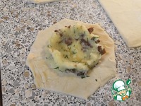 На центр выложить картофельную начинку. Сформироварть из нее что-то вроде корзинки. |