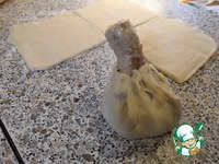 Описание: Голени цыпленка, запечённые в мешочках из слоёного теста с начинкой из картошки (с грибами - по желанию) в аэрогриле.