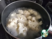 Цветную капусту разобрать на соцветия и отварить до полуготовности. Воду не солить! |