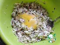 Смешать все натертые ингредиенты, добавить 2 яйца и муку. НИЧЕГО НЕ СОЛИТЬ. Соли достаточно за счет брынзы. |