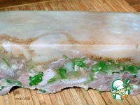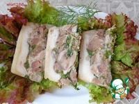 Описание: "Галантинить" или желировать предлагаю рульку, получим прекрасную замену магазинным колбасам. В разрезе галантин выглядит нарядно «как на картинке», именно для этого к мясу добавлены зелень и специи. Блюдо может приятно поразить гостей и домашних не в сердце, прямо в желудок.