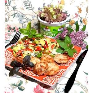 Котлеты румяные, мягкие и сочные. Ели их с салатом из свежих овощей и заправляли соусом "Сладкий чили". |