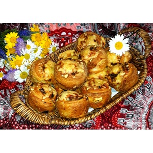 Описание: Очень мягкие, пышные булочки с шампиньонами, овощами и с сырной хрустящей корочкой. Начинка сочная и ароматная.