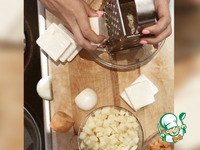 Натираем 5 кусочков сыра, а еще два режим кубиками (По желанию, я люблю сыр кусочками) |