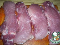 - свинину нарезать на пластины толщиной 2 -3 см |
