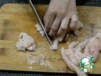 Куриное филе нарезать кубиками. |