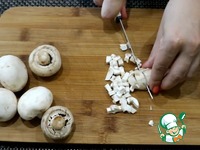 Шампиньоны нарезать кубиками и добавить к филе. |