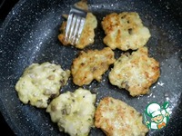 Выкладываем курино-грибную массу на разогретую сковороду с растительным маслом по 1 ст. л. Жарим с двух сторон до золотистого цвета. |