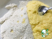 В орехи которые перекрутили в муку добавить- муку пшеничную, соль, ванилин, разрыхлитель, все хорошо перемешать. |