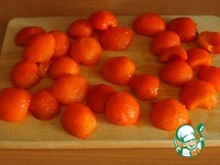Абрикосы помыть, залить кипятком и почти сразу же горячую воду слить и промыть абрикосы холодной водой. Лучше подойдут некрупные абрикосы. |