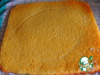 Рулет развернуть. Смазать абрикосовым джемом, чтобы закрыть поры бисквита. |