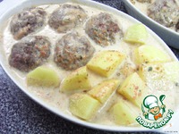 Очистить картофель, порезать кусочками, добавить к шарикам. |
