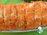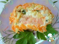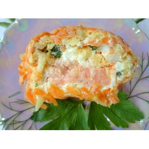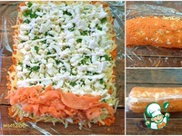 Описание: Салат - рулет несколько по другому заявляет о себе на столе и привлекает внимание. Формовка салата не является новинкой, но очень яркий и торжественный. Нет обилия ингредиентов. Вкус салата объединяет малосольная красная рыба.