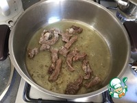 Тушим мясо на оливковом масле минут 20 на медленном огне под закрытой крышкой. |