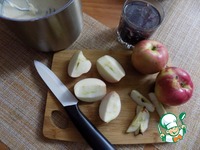 Изюм запарила. Его можно взять любой, какой есть в наличии. Яблоки у меня садовые, они красные, но ещё с кислинкой. Я их не чистила, убрала только серединку и нарезала пластинками. |