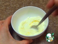 Тем временем смешаю майонез и измельченный чеснок (1-2 зубчика). |
