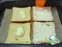 Маонезно-чесночную смесь выкладываю на ломтики подсушенного хлеба и распределяю по всей поверхности. |