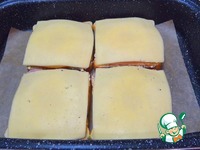 Накрываю бутерброды ломтиками сыра и ставлю запекаться в разогретую до 200°C духовку на 10-15 минут. |
