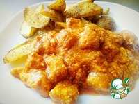Возвращаем соус в сковородку, добавляем уже приготовленную нами курицу и кефир. Тушим всё вместе ещё 10-15 минут. Потом снимаем пробу - можете добавить ещё специй на ваше усмотрение и вкус :-) |