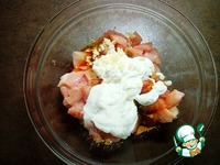 К курице добавляем йогурт, лимонный сок, соль, мелко нарезанный чеснок, растительное масло и специи; гарам масалу, жгучий перец, имбирь, куркуму, и тандури масалу. |