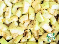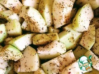 Кабачки почистить, порезать крупно. Присолить, посыпать специями. Перемешать. Отставить на 30 минут. |