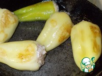 После того как все перчики наполнили начинкой, приступаем к обжариваю перцев. На небольшом количестве масла или даже на сухой сковородке. Подпекаем со всех сторон до золотинки. |