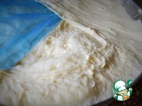 Добавляя оставшуюся муку, замесить лёгкое эластичное тесто. ОБРАТИТЕ ВНИМАНИЕ : от размера яйца зависит количество муки. |