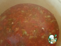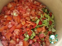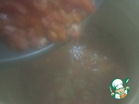 В кастрюлю выложить перец и половину порции (1,5 кг) помидор. Ставим на огонь. После закипания варим ещё 15 минут. |