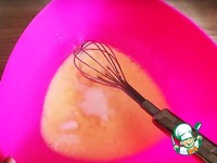 Наливаем молоко в глубокую посуду добавляем 2 яйца после перемешиваем |