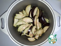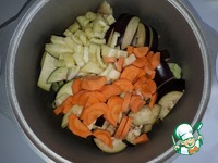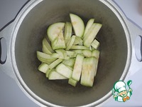 Добавить нарезанные баклажаны к кабачкам в казанок |