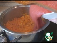 В кастрюлю с толстым дном наливаем подсолнечное масло, выкладываем нарезанный лук, обжарим его, чтобы стал прозрачным. Потом добавляем перемолотую в мясорубке морковь и тоже обжарим несколько минут. |