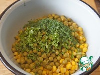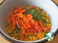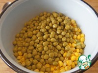 Затем добавить зеленый горошек, тоже без жидкости. |