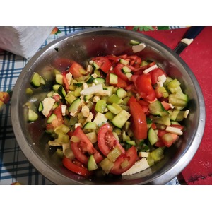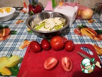 Огурцы в этом блюде для хруста и объема. Режем помельче. Хватает 2 штук. |