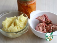 Соединить в миске картофельное пюре, пробитую в блендере тушенку, добавить яйцо (1 шт.) |