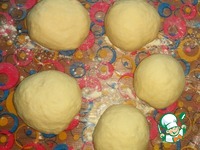 Подошедшее тесто обмять и разделить на 5 частей. |