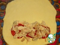 Описание: Предлагаю испечь интересную порционную закрытую пиццу. Тесто для пиццы у меня самое простое, как для обычной пиццы. А вот начинка очень интересная: курица, помидоры и творог с сыром и чесноком. Очень вкусное сочетание, начинка получается сочной и ароматной!