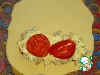 На одну половину раскатанного теста выложить нарезанный кружочками помидор. Присолить. |