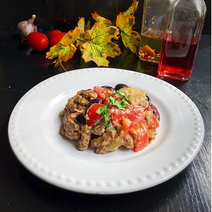 Добавить специи, уксус, и чеснок пропущенный через пресс. Выложить маслины и грецкие орехи прокрученные на мясорубке или измельчённые в блендере. Салат перемешать. |