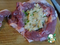 Наполнить утиный "кармашек" начинкой. Можно скрепить бока кожи зубочисткой. |