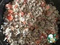 Обжариваем лук до прозрачного цвета. Добавляем фарш. Следом добавляем помидоры и рис и жарим еще 20 мин. Солим по вкусу. |