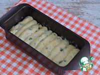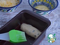Обмазать заготовку со всех сторон растопленным сливочным маслом и положить швом вниз в форму для выпечки. (размер моей формы 20*11*7) |