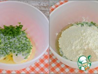 В теплое молоко вбить яйцо (С0), влить кукурузное (подсолнечное, оливковое) масло, добавить мелко нарезанный зеленый лук. Муку просеять, смешать с солью, сахаром и дрожжами. |
