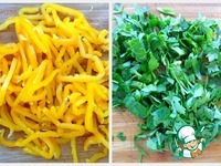 Сладкий перец порезать соломкой, измельчить зелень. |