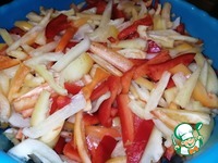 После того как время истечет, добавляем нарезанный перец и все хорошенько перемешиваем. Кипятить после закипания еще пять минут. |