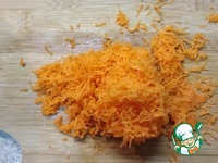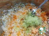 Натереть на мелкой тёрке, выложить в кастрюлю и перемешать |