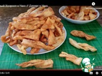Каждую заготовку хвороста отпускаем в разогретое подсолнечное масло. И жарим до золотистого цвета. |