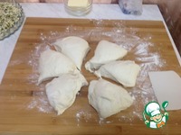 Делим тесто на 6 равных частей и подкатываем каждый кусочек. |