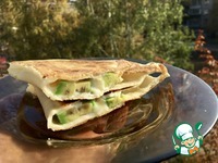 Сверху кладём авокадо, сыр, специи, заворачиваем в треугольник |