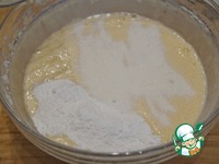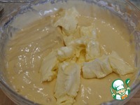 И выложить поверх первого слоя в форму. Слегка перемешать, чтобы тесто стало мраморным. |