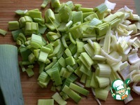 Порей разрезать вдоль и промыть, нарезать. |